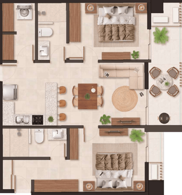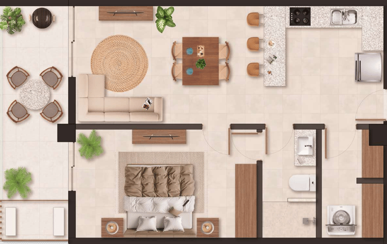 Diseñado no solo para el descanso, sino también para ofrecer una experiencia de vida premium, donde la comodidad, el lujo y la naturaleza convergen en un solo lugar. Es el espacio perfecto para escapar del día a día y disfrutar de los pequeños placeres de la vida.