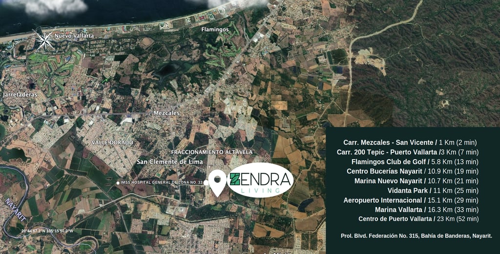 Con acceso cerca de la nueva carretera que conecta Guadalajara -Puerto Vallarta, a tan solo 20 min., lo que garantiza una conectividad rápida y eficiente con ambas ciudades.