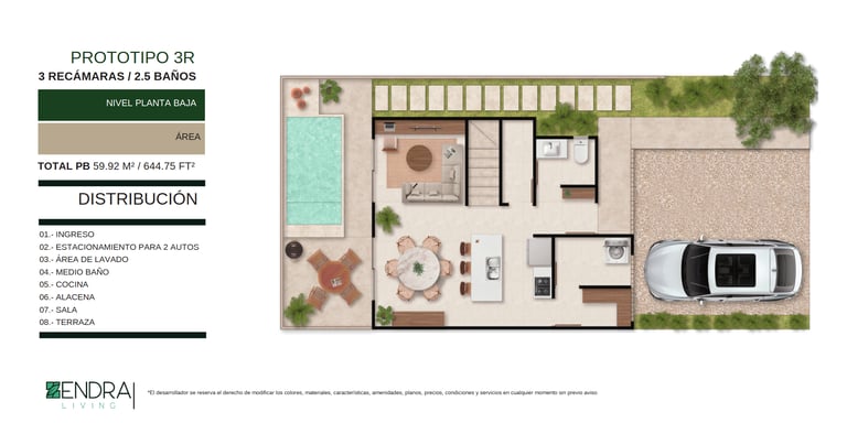 Zendra Living es un exclusivo desarrollo residencial conformado por 125 Unidades con prototipos de 2, 3 y 4 Recámaras, superficies desde los 136 m².